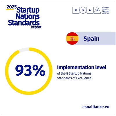 España se sitúa entre los países europeos más avanzados en el impulso al emprendimiento innovador, alcanzando un 93% de implementación de los Startup Nations Standards (SNS), según el informe anual de la Europe Startup Nations Alliance (ESNA) correspondiente a 2025. El resultado supone una mejora de dos puntos porcentuales respecto al año anterior y sitúa a España por encima de la media europea en todos los estándares evaluados.